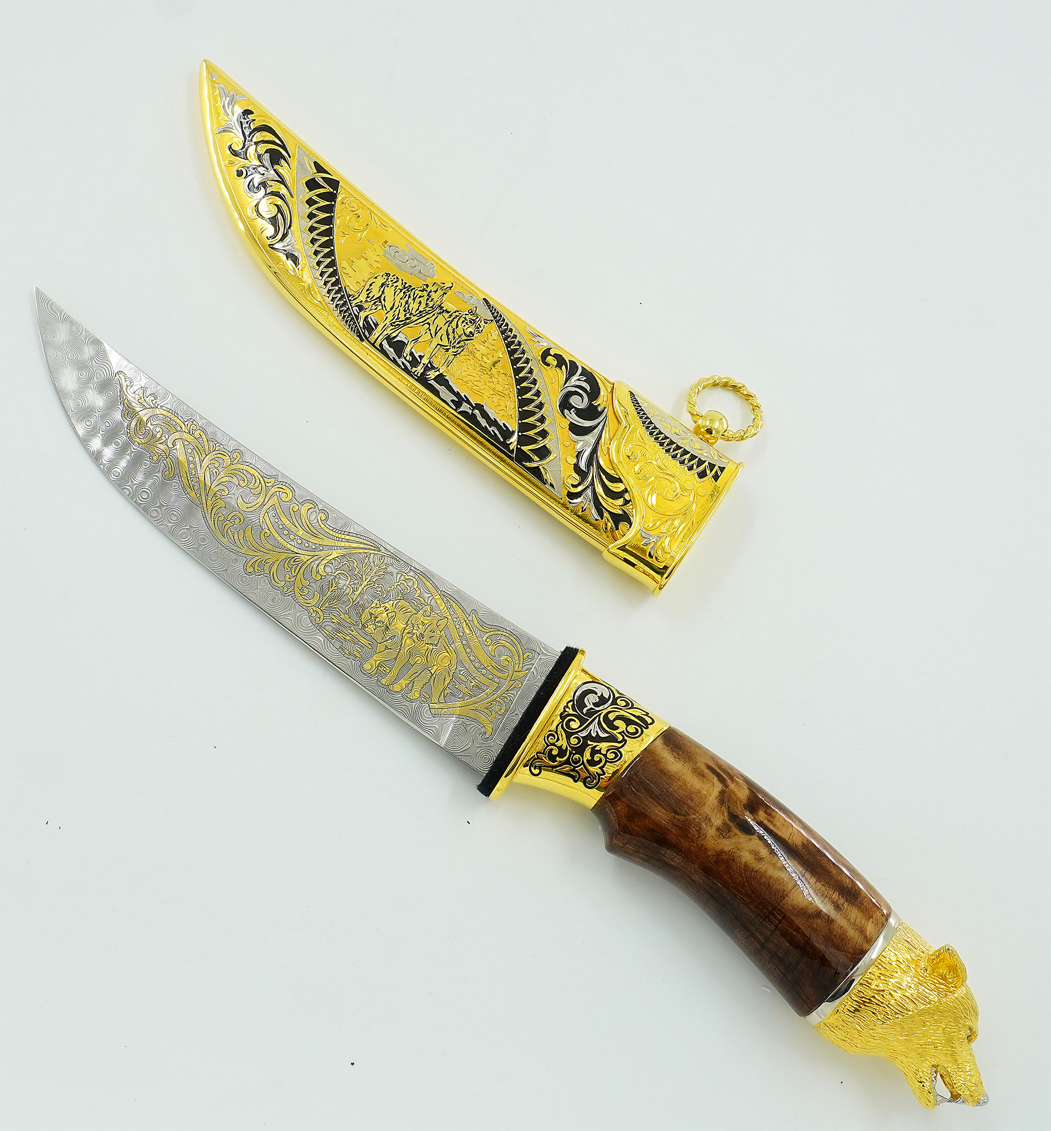 Нож складной дамасский "Волк" №2 Златоуст арт. z111127